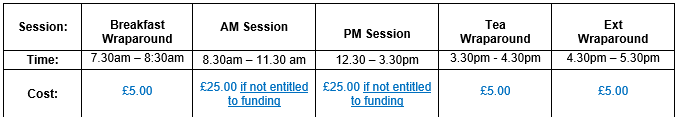 All places are subject to availability, and funding can be taken as part of a full-time or part-time place, with additional hours available for purchase.